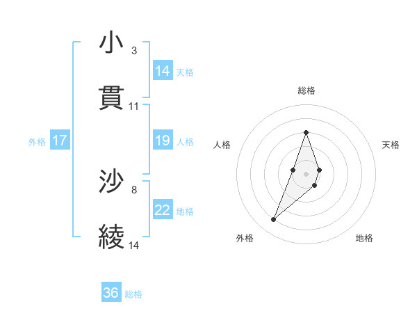 小貫 沙綾さんの天格は14画の1点!