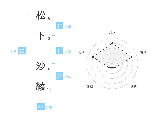 松下 沙綾さんを姓名の画数から五運を鑑定