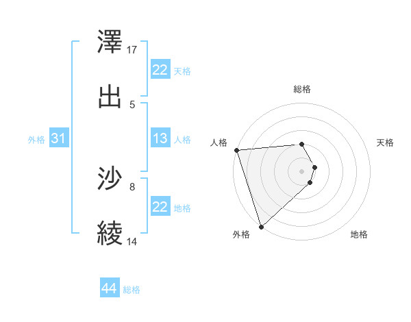 澤出 沙綾さんの総格は44画の2点!
