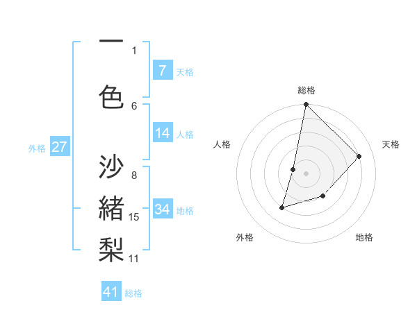 一色 沙緒梨さんの総格は41画の5点!