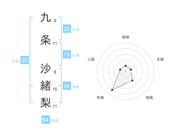 九条 沙緒梨さんを姓名の画数から五運を鑑定