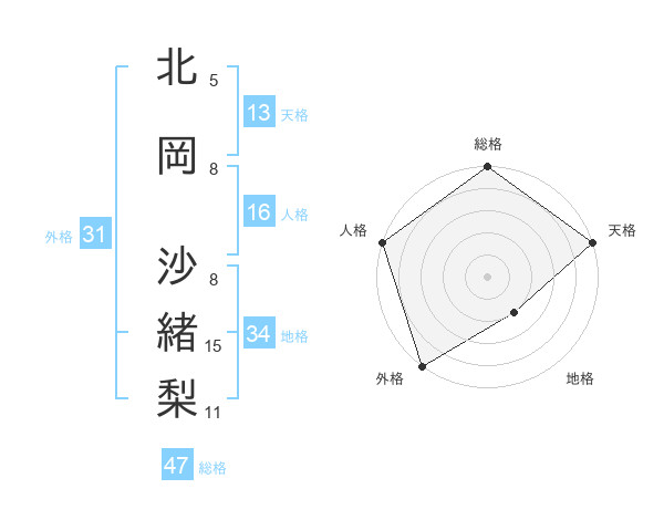 北岡 沙緒梨さんを姓名の画数から五運を鑑定