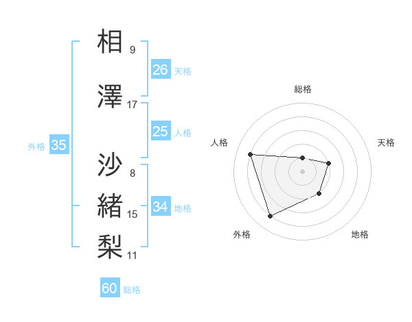 相澤 沙緒梨さんを姓名の画数から五運を鑑定