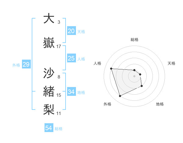 大嶽 沙緒梨さんを姓名の画数から五運を鑑定