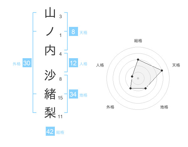 山ノ内 沙緒梨さんの天格は8画の4点!