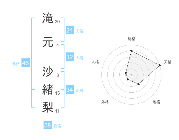 滝元 沙緒梨さんの天格は24画の5点!