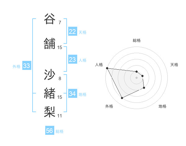 谷舗 沙緒梨さんの外格は33画の4点