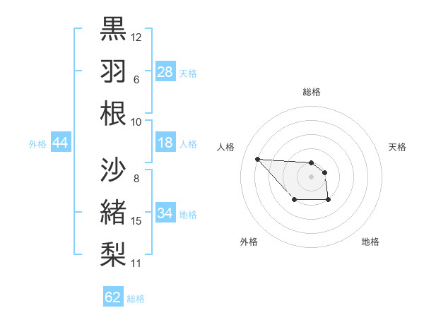 黒羽根 沙緒梨さんの総格は62画の1点!