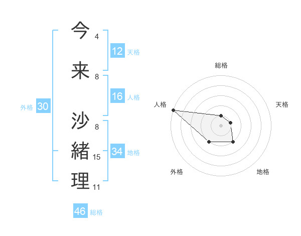 今来 沙緒理さんの総格は46画の1点!