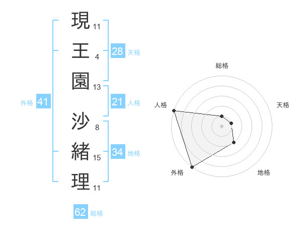現王園 沙緒理さんを姓名の画数から五運を鑑定