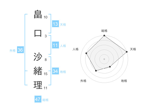 畠口 沙緒理さんを姓名の画数から五運を鑑定