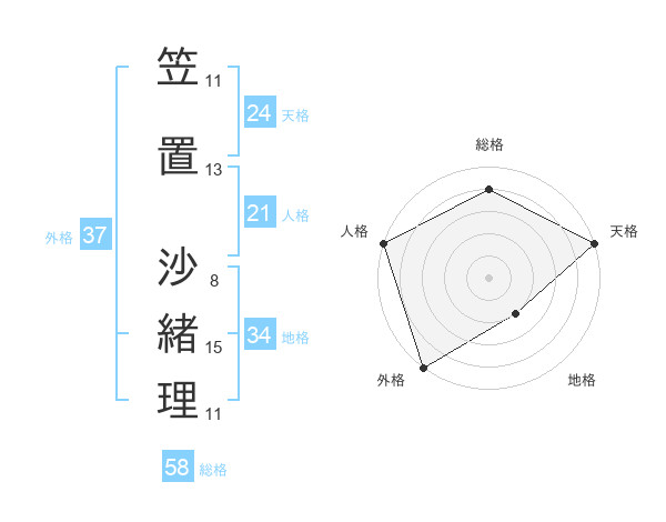 笠置 沙緒理さんを姓名の画数から五運を鑑定
