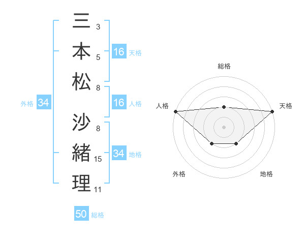 三本松 沙緒理さんを姓名の画数から五運を鑑定