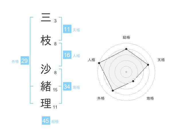 三枝 沙緒理さんの天格は11画の4点!