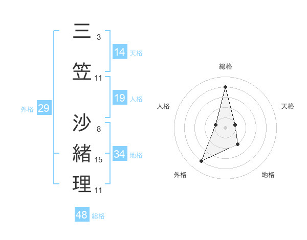 三笠 沙緒理さんを姓名の画数から五運を鑑定