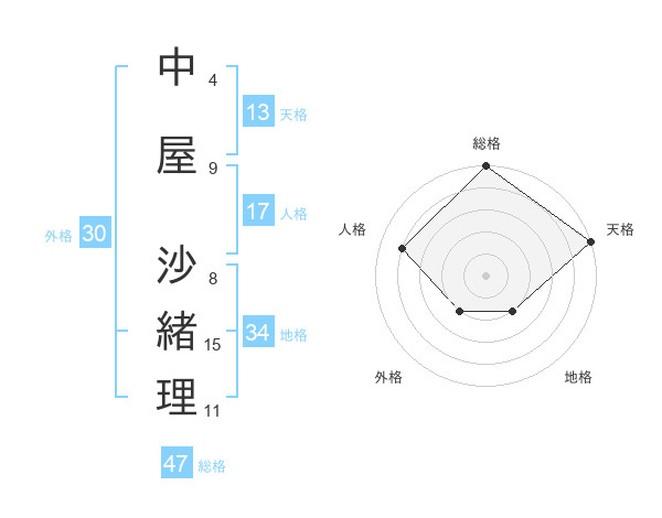 中屋 沙緒理さんを姓名の画数から五運を鑑定