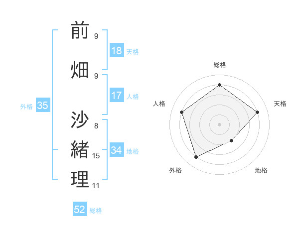 前畑 沙緒理さんの総格は52画の4点