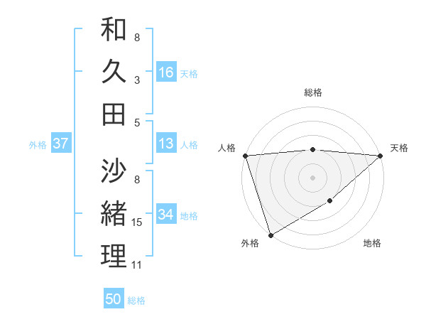 和久田 沙緒理さんを姓名の画数から五運を鑑定