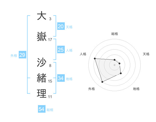 大嶽 沙緒理さんの外格は29画の4点!