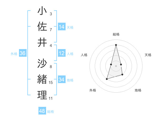 小佐井 沙緒理さんの総格は48画の4点!