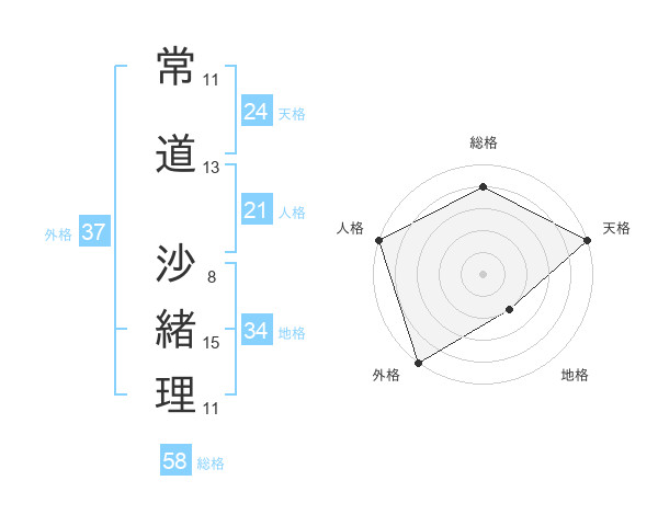常道 沙緒理さんを姓名の画数から五運を鑑定