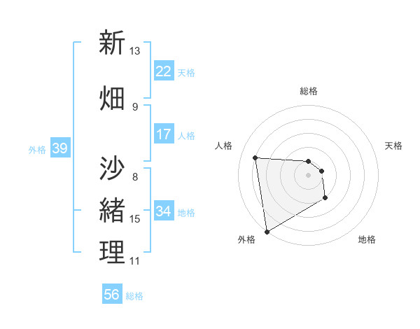 新畑 沙緒理さんを姓名の画数から五運を鑑定