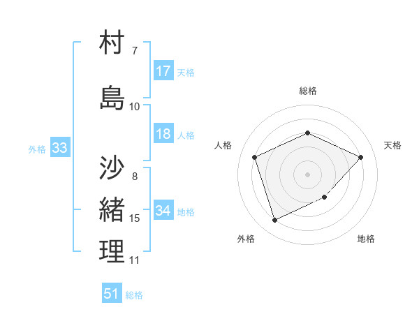 村島 沙緒理さんを姓名の画数から五運を鑑定