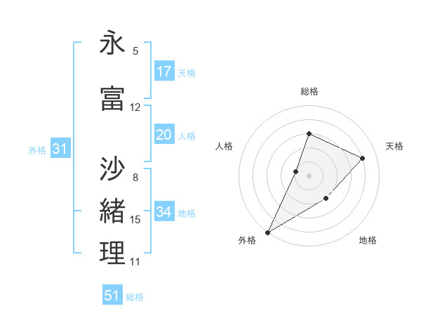 永富 沙緒理さんを姓名の画数から五運を鑑定