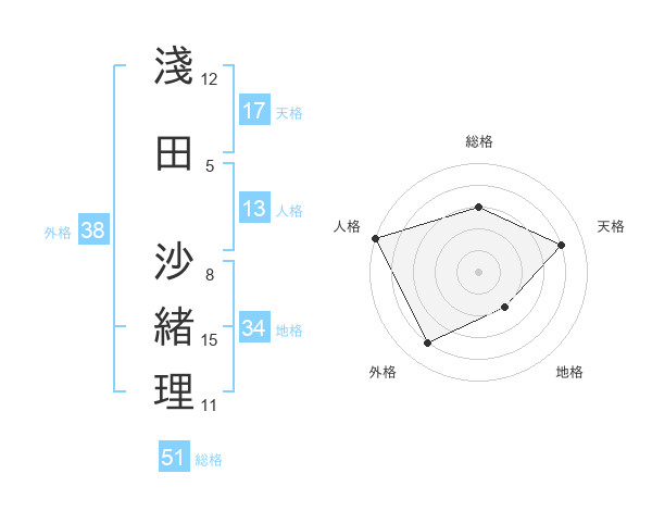 淺田 沙緒理さんを姓名の画数から五運を鑑定
