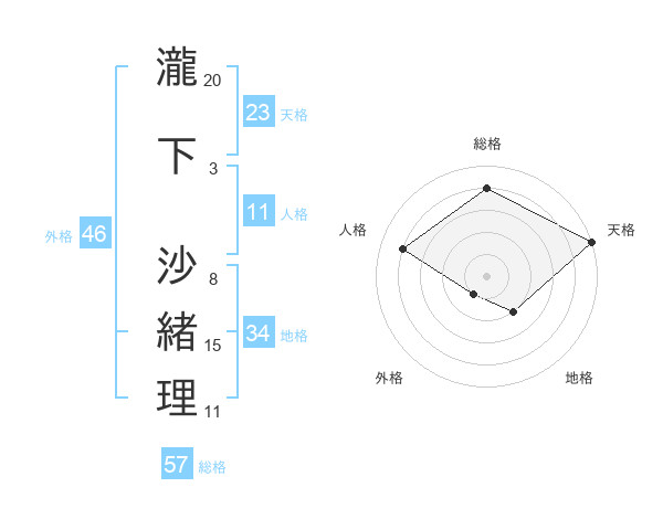 瀧下 沙緒理さんを姓名の画数から五運を鑑定