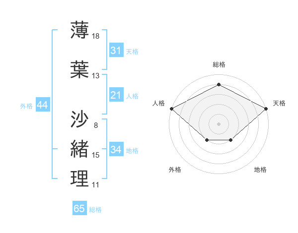 薄葉 沙緒理さんを姓名の画数から五運を鑑定