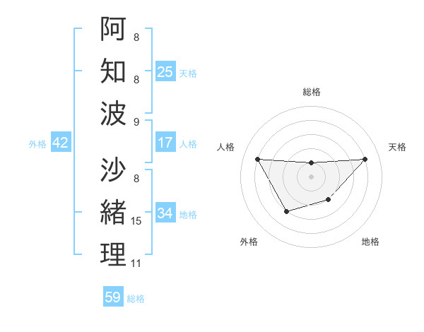 阿知波 沙緒理さんを姓名の画数から五運を鑑定