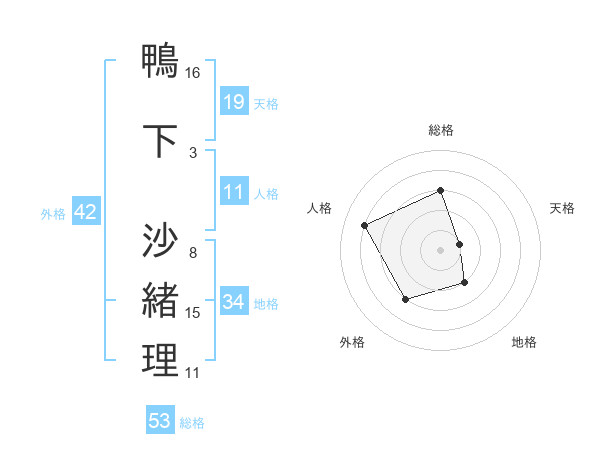 鴨下 沙緒理さんを姓名の画数から五運を鑑定