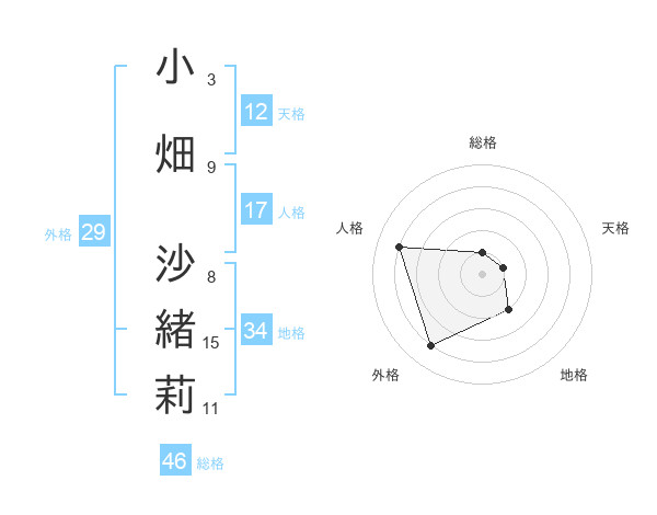 小畑 沙緒莉さんの天格は12画の1点!
