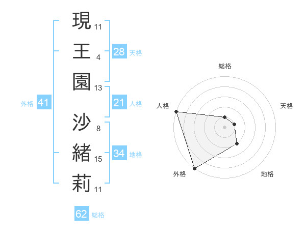 現王園 沙緒莉さんの外格は41画の5点!