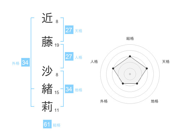 近藤 沙緒莉さんを姓名の画数から五運を鑑定