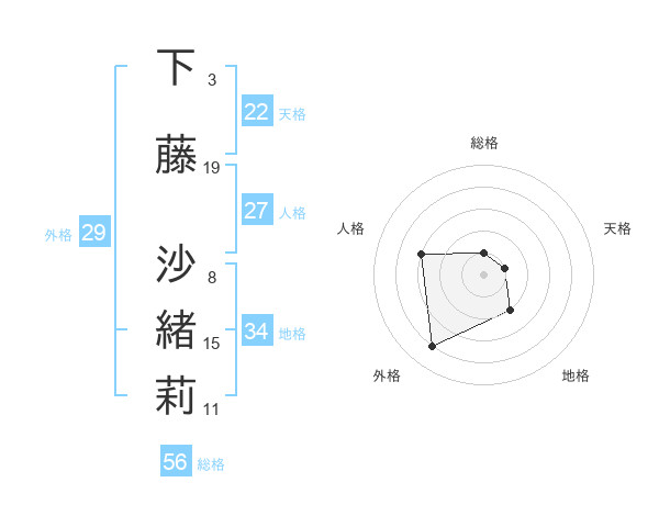 下藤 沙緒莉さんを姓名の画数から五運を鑑定