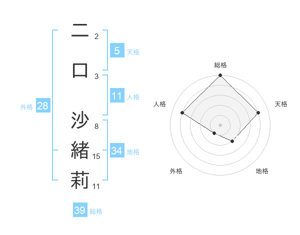 二口 沙緒莉さんを姓名の画数から五運を鑑定