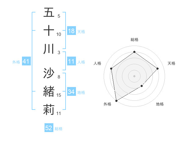 五十川 沙緒莉さんを姓名の画数から五運を鑑定