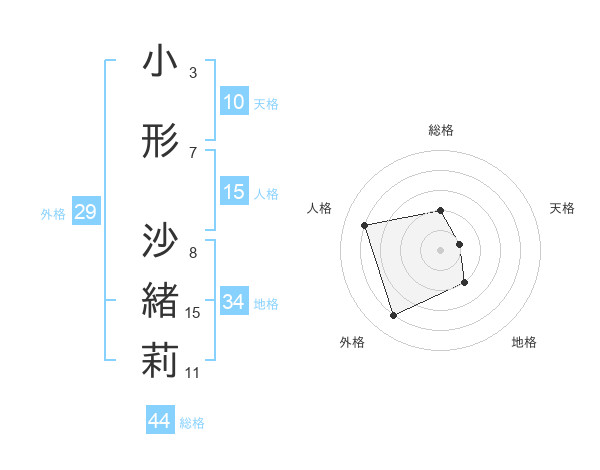 小形 沙緒莉さんを姓名の画数から五運を鑑定