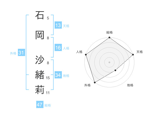 石岡 沙緒莉さんの総格は47画の5点!