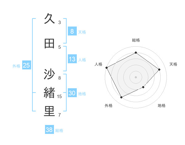 久田 沙緒里さんを姓名の画数から五運を鑑定