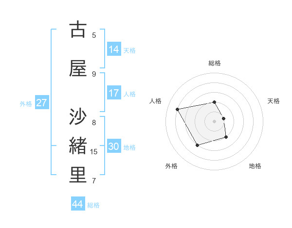 古屋 沙緒里さんを姓名の画数から五運を鑑定
