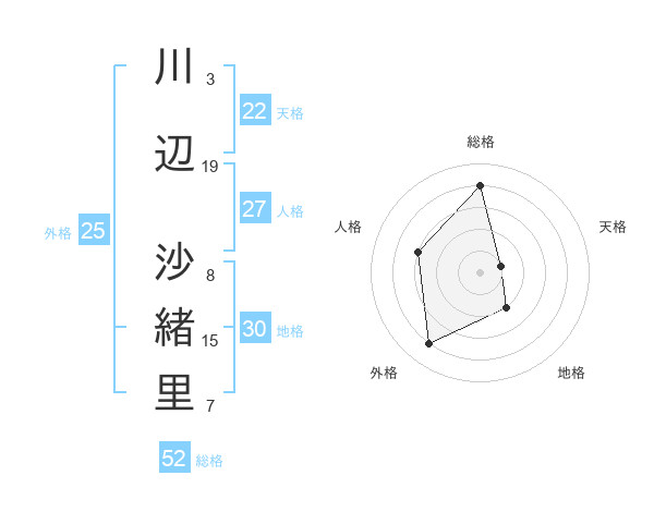 川辺 沙緒里さんを姓名の画数から五運を鑑定