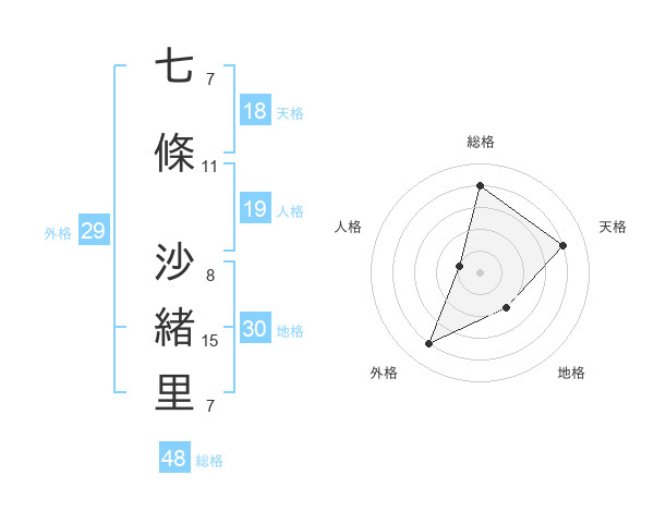 七條 沙緒里さんを姓名の画数から五運を鑑定