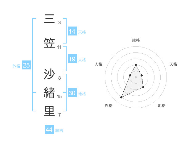 三笠 沙緒里さんを姓名の画数から五運を鑑定