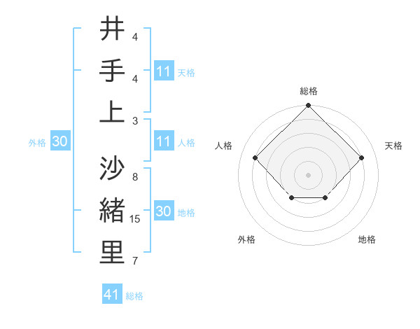 井手上 沙緒里さんの総格は41画の5点!