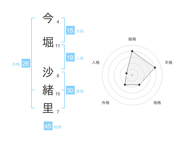 今堀 沙緒里さんを姓名の画数から五運を鑑定