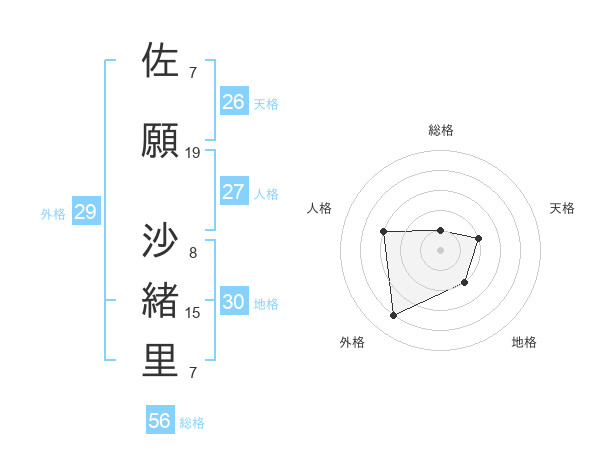 佐願 沙緒里さんの外格は29画の4点