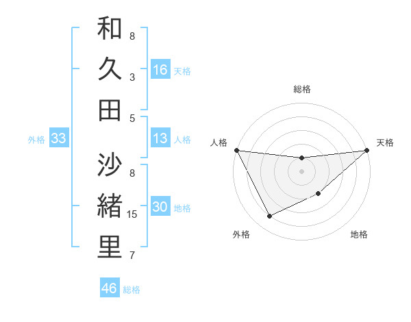 和久田 沙緒里さんを姓名の画数から五運を鑑定